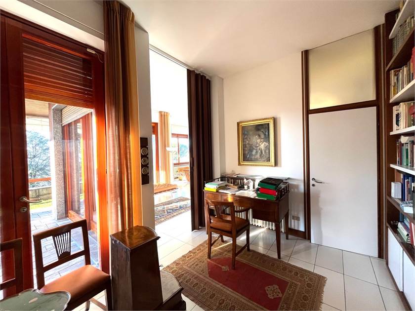Gli spazi sono stati concepiti con cura meticolosa, mettendo in risalto il rapporto con il giardino e la luminosità naturale che pervade ogni ambiente. Dalla proprietà è possibile godere di una splendida vista sul Lago di Varese e sulla catena del Monte Rosa, dettaglio che rende la residenza ancora più esclusiva e suggestiva. Le finiture sono decisamente fuori dal comune: materiali pregiati, dettagli ricercati e scelte costruttive di qualità superiore conferiscono alla dimora un carattere esclusivo e un’impronta di autentico pregio. A impreziosire la zona living, un importante camino scenografico, perfettamente integrato nell’architettura e capace di conferire calore e un’atmosfera accogliente. All’esterno, un giardino impeccabile circonda la proprietà, offrendo privacy, eleganza e un’atmosfera rilassante. Gli spazi esterni sono studiati per essere vissuti pienamente: aree pranzo, zone relax e scorci panoramici che valorizzano ulteriormente il carattere unico della residenza. Completano la proprietà tre ampi locali multiuso, un servizio igienico, cantina, ed ampissima autorimessa.